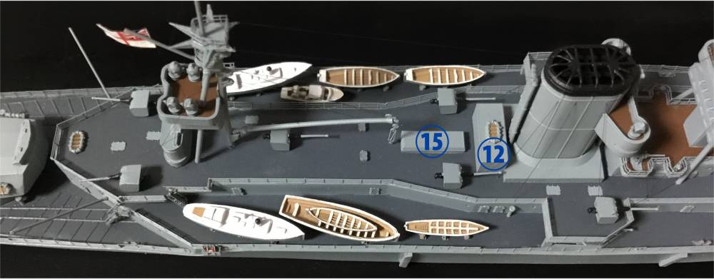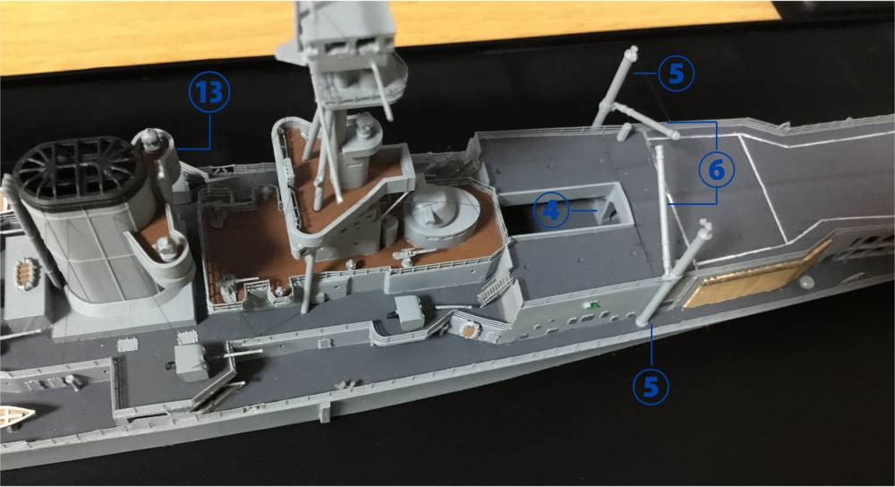 詳細が不明でありキットでは省略してありますので、日本艦や英国艦を参考に配置してみるのも良いかもしれません。